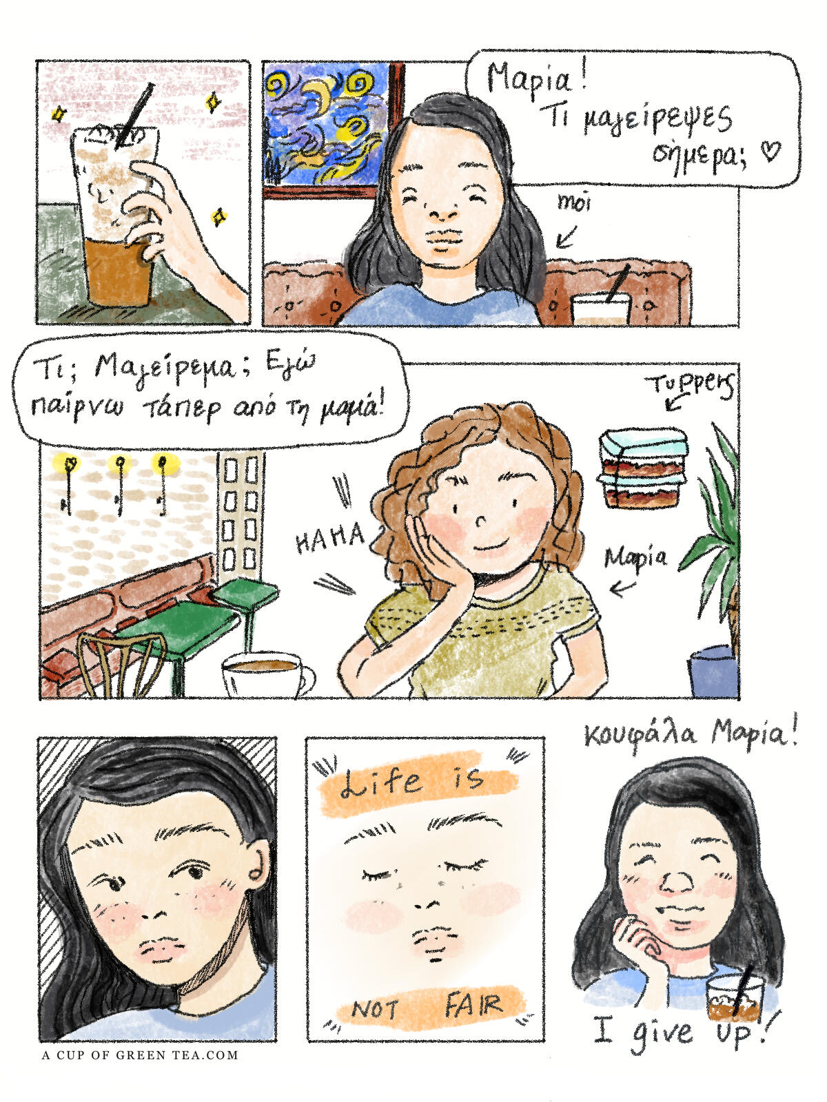 Welcome to A CUP OF GREEN TEA Illustration 🍵Hi, I'm Tomomi, a Japanese illustrator, cartoonist, and language teacher based in Greece.🍵 Last update: 2nd April, 2026 ☀︎ Daily Comics.