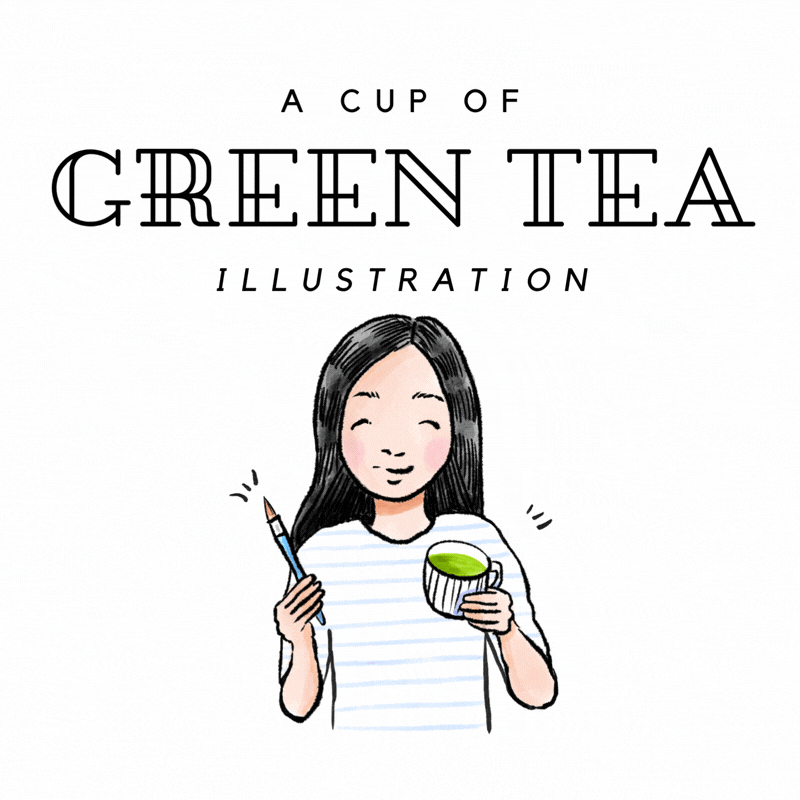 My process begins in a sketchbook, where I draw by hand, then add color with watercolor. I sometimes make minor adjustments using Procreate or Photoshop if needed. I love the feel of hand-drawn work, so I try to keep edits to a minimum. 🎨The tea in the photo is sencha(煎茶), a traditional Japanese green tea - a cup of green tea that begins my mornings! 🍵